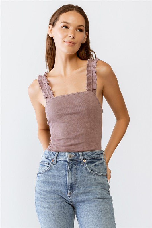 Dusty Purple Ruffle Tank Top Ribbed Bodysuit